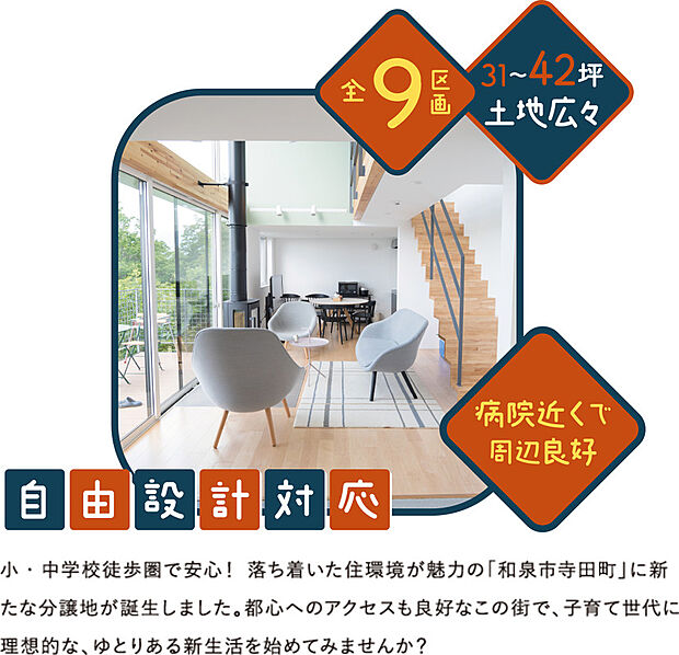 ■POINT(1)■ 小学校まで徒歩13分!中学校も徒歩10分圏内! ■POINT(2)■ 和泉府中駅自転車で12分!和泉中央駅まで自転車で16分! ■POINT(3)■ 31坪以上のゆとりあるお土地で、理想の暮らしを実現!分譲地ならではの街並みも魅力的!