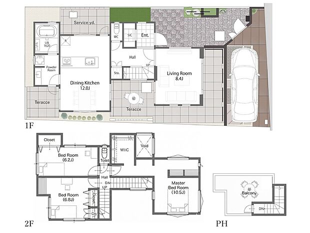 • 【庭】外からの視線に配慮した中庭テラス。リビングやダイニングに光と風を届け、住まい全体に開放感をもたらします。