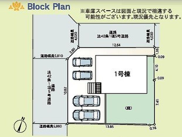 1号棟:北西4m 南西5.8m