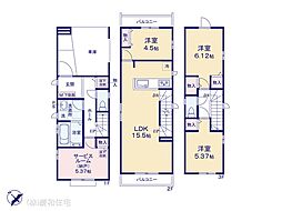| 間取り | 3SLDK 間取り内訳:収納 5.3帖(1階)・リビングダイニングキッチン 15.5帖(2階)・洋室 4.5帖(2階)・洋室 6.1帖(3階)・洋室 5.3帖(3階) |
