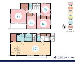 | 間取り | 3LDK 間取り内訳:洋室 7.1帖(1階)・洋室 5.6帖(1階)・洋室 5.2帖(1階)・リビングダイニングキッチン 18.5帖(2階) |