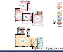 | 間取り | 4LDK 間取り内訳:リビングダイニングキッチン 20帖(1階)・洋室 7.2帖(2階)・洋室 6帖(2階)・洋室 6帖(2階)・洋室 5.2帖(2階) |