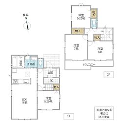 間取り内訳:リビングダイニングキッチン 16帖(1階)・洋室 5.2帖(1階)・洋室 5.2帖(2階)x2・洋室 7.2帖(2階)