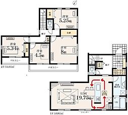 間取り内訳:リビングダイニングキッチン 21帖(1階)・洋室 7帖(2階)・洋室 5.2帖(2階)・洋室 5.2帖(2階)・洋室 5.2帖(2階)