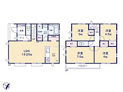 間取り内訳:リビングダイニングキッチン 17.4帖(1階)・洋室 6帖(2階)・洋室 5帖(2階)・洋室 7.1帖(2階)