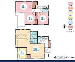 | 間取り | 3LDK 間取り内訳:リビングダイニングキッチン 23帖(1階)・洋室 6.9帖(1階)・洋室 5.4帖(2階)・洋室 5.2帖(2階) |