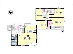 間取り内訳:リビングダイニングキッチン 18帖(1階)・洋室 7.5帖(2階)・洋室 6帖(2階)・洋室 5.2帖(2階)・洋室 4.6帖(2階)