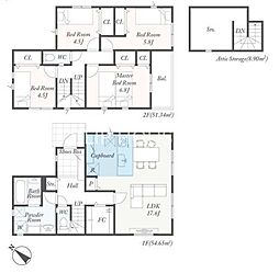 | 間取り | 4LDK 間取り内訳:リビングダイニングキッチン 18.5帖(1階)・洋室 7.8帖(2階)・洋室 5.3帖(2階)・洋室 5.3帖(2階)・洋室 4.5帖(2階) |