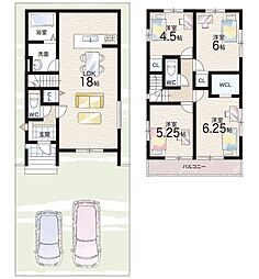| 間取り | 4LDK 間取り内訳:リビングダイニングキッチン 23.4帖(1階)・洋室 5.7帖(2階)・洋室 5帖(2階)・洋室 6.5帖(2階)・洋室 4帖(2階) |
