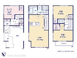 間取り内訳:リビングダイニングキッチン 14.8帖・洋室 6帖・洋室 5帖・収納 5.6帖
