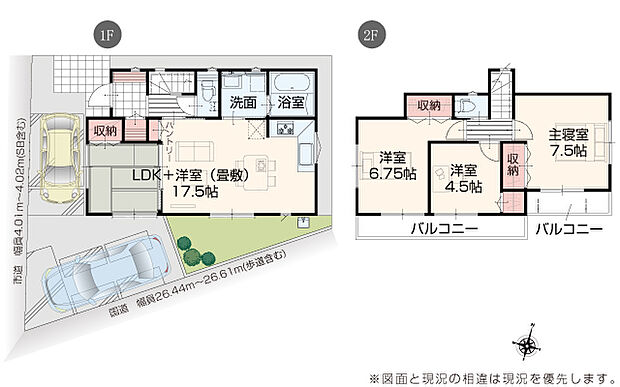 • 「建築条件付き土地」の「建物プラン例」は、土地購入者の設計プランの一例であり、プランの採用可否は任意です。
