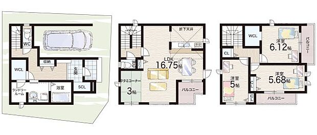 | 間取り | 3LDK+S(納戸) | 建物階 | 木造 地上3階建て |