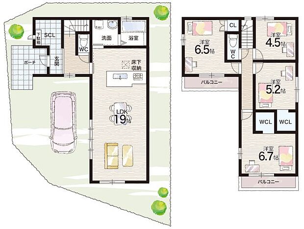 • 「建築条件付き土地」の「建物プラン例」は、土地購入者の設計プランの一例であり、プランの採用可否は任意です。