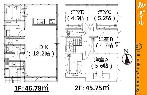 • 2階には洋室を4部屋ご用意いたします(1号棟同仕様)