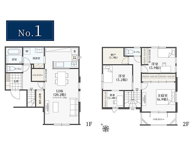| 販売戸数 | 2戸 | 最多価格帯 | 5400万円台1戸 4800万円台1戸 他 |