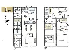 | 間取り | 3LDK 間取り内訳:リビングダイニングキッチン 17帖(1階)・洋室 5.7帖(2階)・洋室 7.5帖(2階)・洋室 6帖(2階) |