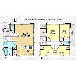 | 間取り | 4LDK 間取り内訳:リビングダイニングキッチン 4帖(1階)・洋室 7帖(2階)・洋室 3.8帖(2階)・洋室 3.8帖(2階)・洋室 5.7帖(2階) |