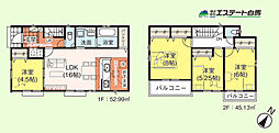 | 間取り | 3SLDK 間取り内訳:リビングダイニングキッチン 13.5帖(2階)・洋室 8帖(2階)・洋室 6帖(2階)・洋室 6帖(1階)・収納 8帖(1階) |