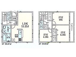 | 間取り | 3LDK 間取り内訳:リビングダイニングキッチン 15.2帖(1階)・洋室 4.5帖(2階)・洋室 6帖(2階)・洋室 6.5帖(2階) |