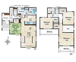 間取り内訳:リビングダイニングキッチン 16.5帖(1階)・洋室 5.2帖(2階)・洋室 7.3帖(2階)・洋室 5.2帖(2階)