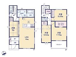 | 間取り | 4LDK 間取り内訳:リビングダイニングキッチン 19.2帖(1階)・洋室 7.5帖(2階)・洋室 6帖(2階)・洋室 5.2帖(2階)・洋室 5.2帖(2階) |