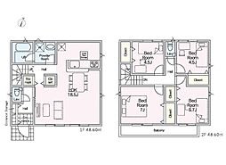 間取り内訳:リビングダイニングキッチン 17帖(1階)・収納 3.5帖(1階)・洋室 6帖(2階)・洋室 5.7帖(2階)・洋室 7.5帖(2階)
