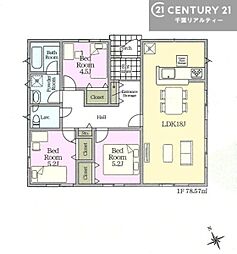 | 間取り | 3LDK 間取り内訳:リビングダイニングキッチン 20.8帖(1階)・洋室 6.3帖(1階)・洋室 4.3帖(1階)・洋室 4.3帖(1階) |