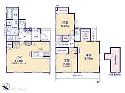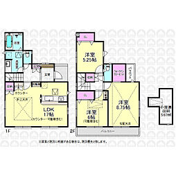 | 間取り | 3LDK 間取り内訳:リビングダイニングキッチン(1階)・洋室(2階)・洋室(2階)・洋室(2階) |