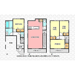 | 間取り | 3LDK 間取り内訳:洋室 8帖(1階)・リビングダイニングキッチン 15.3帖(2階)・洋室 8帖(3階)x2 |