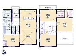 | 間取り | 3LDK 間取り内訳:リビングダイニングキッチン 18帖(1階)・洋室 7.5帖(2階)・洋室 6帖(2階)x2 |