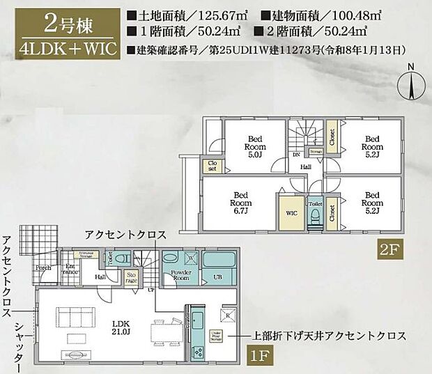 | 間取り | 4LDK 間取り内訳:リビングダイニングキッチン 21帖(1階)・洋室 6.7帖(2階)・洋室 5.2帖(2階)x2・洋室 5帖(2階) |