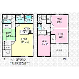 | 間取り | 4LDK 間取り内訳:リビングダイニングキッチン 16帖(1階)・和室 4.5畳(1階)・洋室 6.5帖(2階)x2・洋室 8.5帖(2階) |