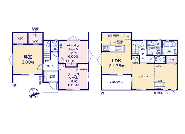 LDKは広々21.75帖。リビングスペース、ダイニングスペース、キッチンスペースをしっかりと確保。ゆったりとした空間でご家族団らんの時をお過ごしください。 キッチンには食器洗い乾燥機を標準装備。家事をサポートする設備で食事後の片付けもラクラクです。 空間を活用した収納として大活躍するロフト。部屋に物を出さず、スッキリしたいですよね。季節ものや衣服など幅を取るような大きなものも収納可能です。