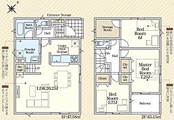 • ◇3SLDK◇土地面積/98.59平方メートル(29.82坪)建物面積/92.73平方メートル(28.05坪)