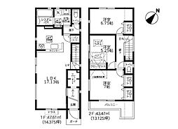 | 間取り | 3LDK 間取り内訳:リビングダイニングキッチン 17帖(1階)・洋室 7帖(2階)・洋室 6帖(2階)・洋室 5.2帖(2階) |