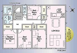 間取り内訳:リビングダイニングキッチン 18.5帖(1階)・洋室 4.5帖(1階)・洋室 6帖(1階)・洋室 6帖(1階)・洋室 6帖(1階)