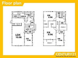 間取り内訳:リビングダイニングキッチン 18帖(1階)・洋室 4.5帖(1階)・洋室 8.5帖(2階)・洋室 6帖(2階)・洋室 5帖(2階)・洋室 5.1帖(2階)