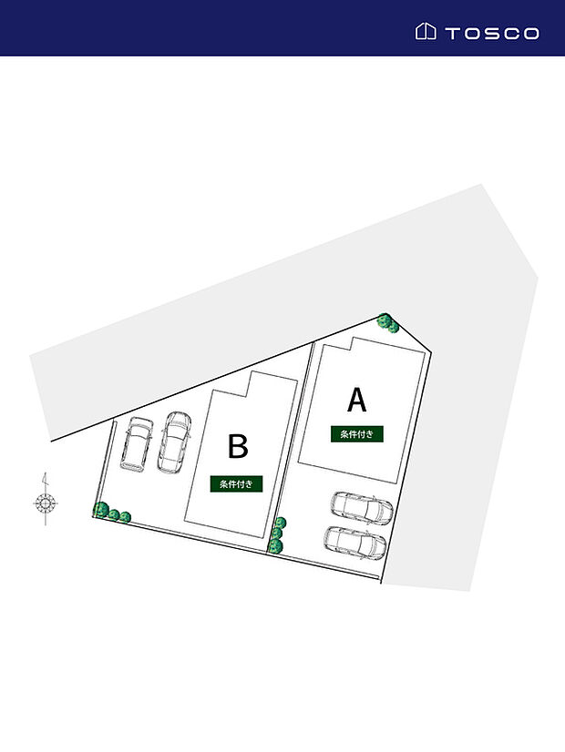 | 土地面積 | 130.96m2(A区画)~130.19m2(B区画) | ||
