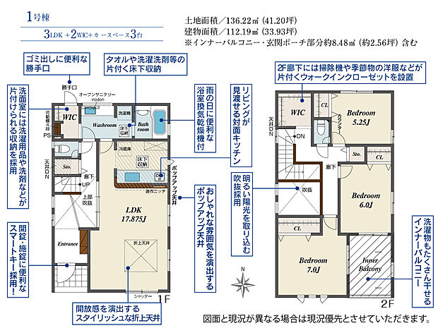 111.09m2(約33.60坪)~112.19m2(約33.93坪) |