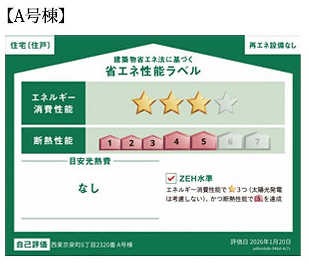 この物件の省エネ性能がわかる「省エネ性能ラベル」です。省エネ性能ラベルは2024年4月以降に建築確認申請した物件などで表示しています。