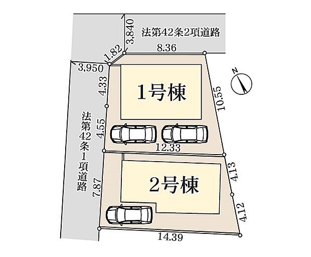 1号棟:北西3.9m 北東3.8m /2号棟:北西3.9m