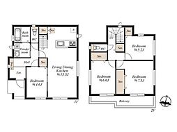 | 建物面積 | 102.7m2・107.23m2(31.06坪・32.43坪) | ||