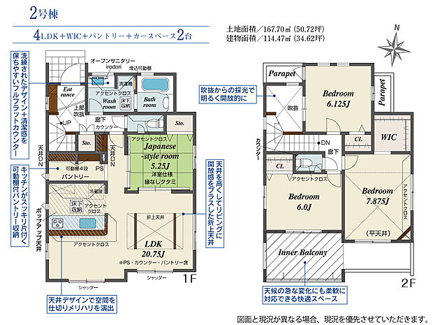 建物面積 111.16m2(約33.62坪)~115.71m2(約35.00坪)