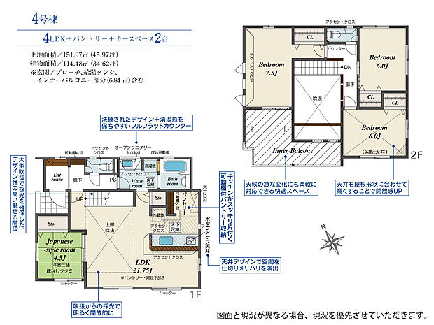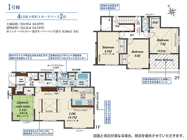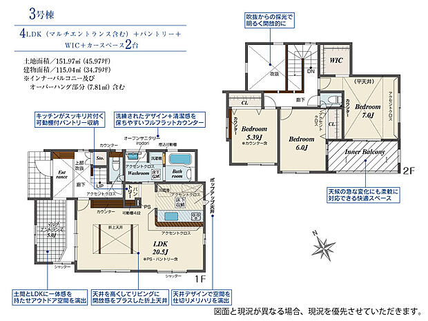 | 建物面積 | 111.16m2(約33.62坪)~115.04m2(約34.79坪) | ||