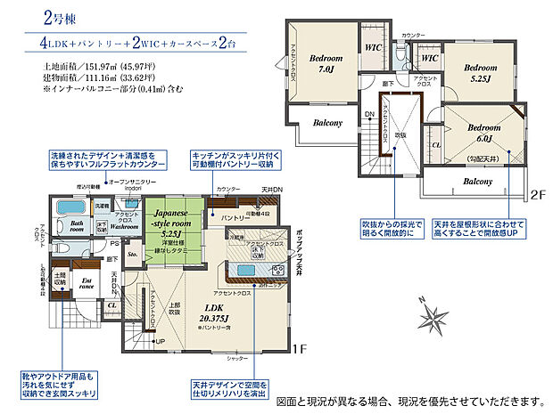 | 建物面積 | 111.16m2(約33.62坪)~115.04m2(約34.79坪) | ||