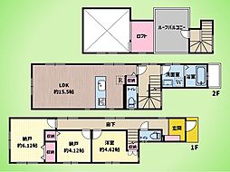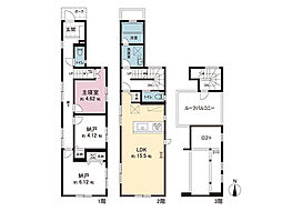 | 間取り | 1SLDK(ロフト付き) 間取り内訳:洋室 4.6帖(1階)・収納 6.1帖(1階)・収納 4.1帖(1階)・リビングダイニングキッチン 15.5帖(2階) |