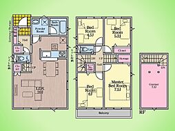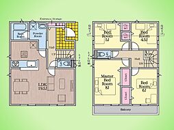 間取り内訳:リビングダイニングキッチン 20帖(1階)・洋室 5.2帖(2階)・洋室 4.5帖(2階)・洋室 7.5帖(2階)・洋室 6帖(2階)
