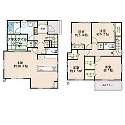 | 間取り | 4LDK 間取り内訳:リビングダイニングキッチン 16帖(1階)・和室 4.5畳(1階)・洋室 8帖(2階)・洋室 6.5帖(2階)・洋室 6帖(2階) |