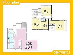 | 間取り | 3LDK 間取り内訳:リビングダイニングキッチン 14.8帖(1階)・洋室 6帖(2階)x2・洋室 7帖(2階) |