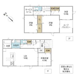 | 間取り | 4SLDK 間取り内訳:リビングダイニングキッチン 16.2帖(1階)・和室 4.5畳(1階)・洋室 7.5帖(2階)・洋室 6帖(2階)・洋室 5帖(2階)・収納 2帖(2階) |